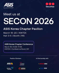 Securitas Korea will participate at SECON & eGISEC 2026, one of Asia’s leading exhibitions for security, safety, and risk management technologies as part of the ASIS Korea Chapter Pavilion at KINTEX in Hall 3-5, Booth J146, from March 18-20, 2026. During the exhibition, the ASIS Korea Chapter Conference will also take place on March 18 from 14:00 – 17:00 in Conference Room 301 at KINTEX.