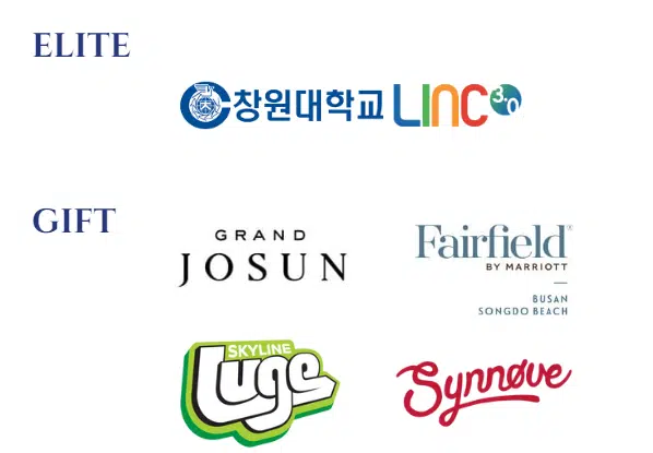 Taking this opportunity, we would like to show our appreciation to event partners for their support: Changwon National University, Grand Josun Busan, Skyline Luge Busan, Songdo Fairfield By Marriott Busan Songdo Beach, and Synnove Korea.