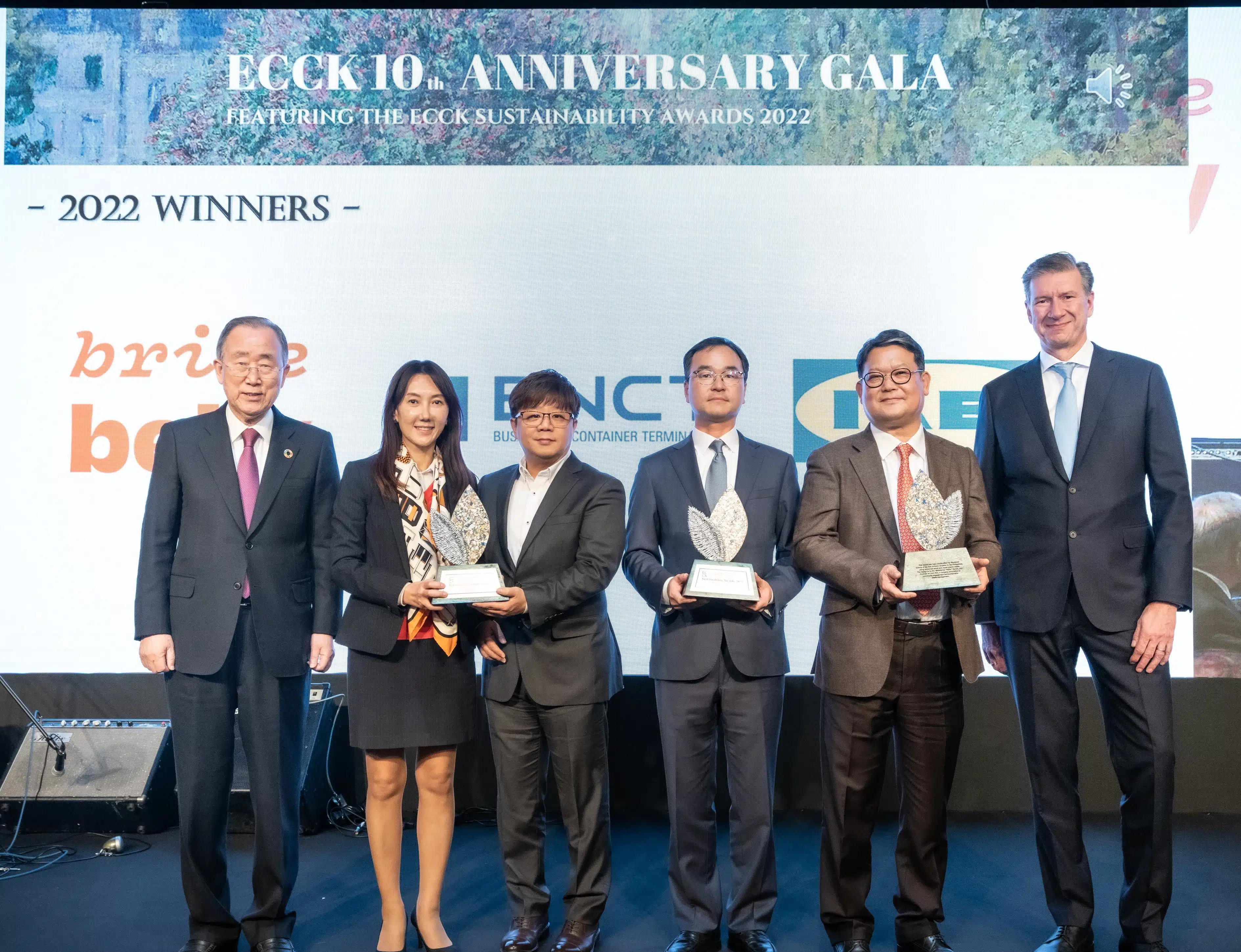 The night was extra special, as the ECCK held the very first ‘ECCK Sustainability Awards’ and announced and awarded the 3 winners. During the ceremony, H.E. Ban Ki-moon, Chair of Green Growth Institute and former Secretary General of the United Nations delivered a congratulatory speech and presented the ECCK’s first Sustainability Awards to winning companies.