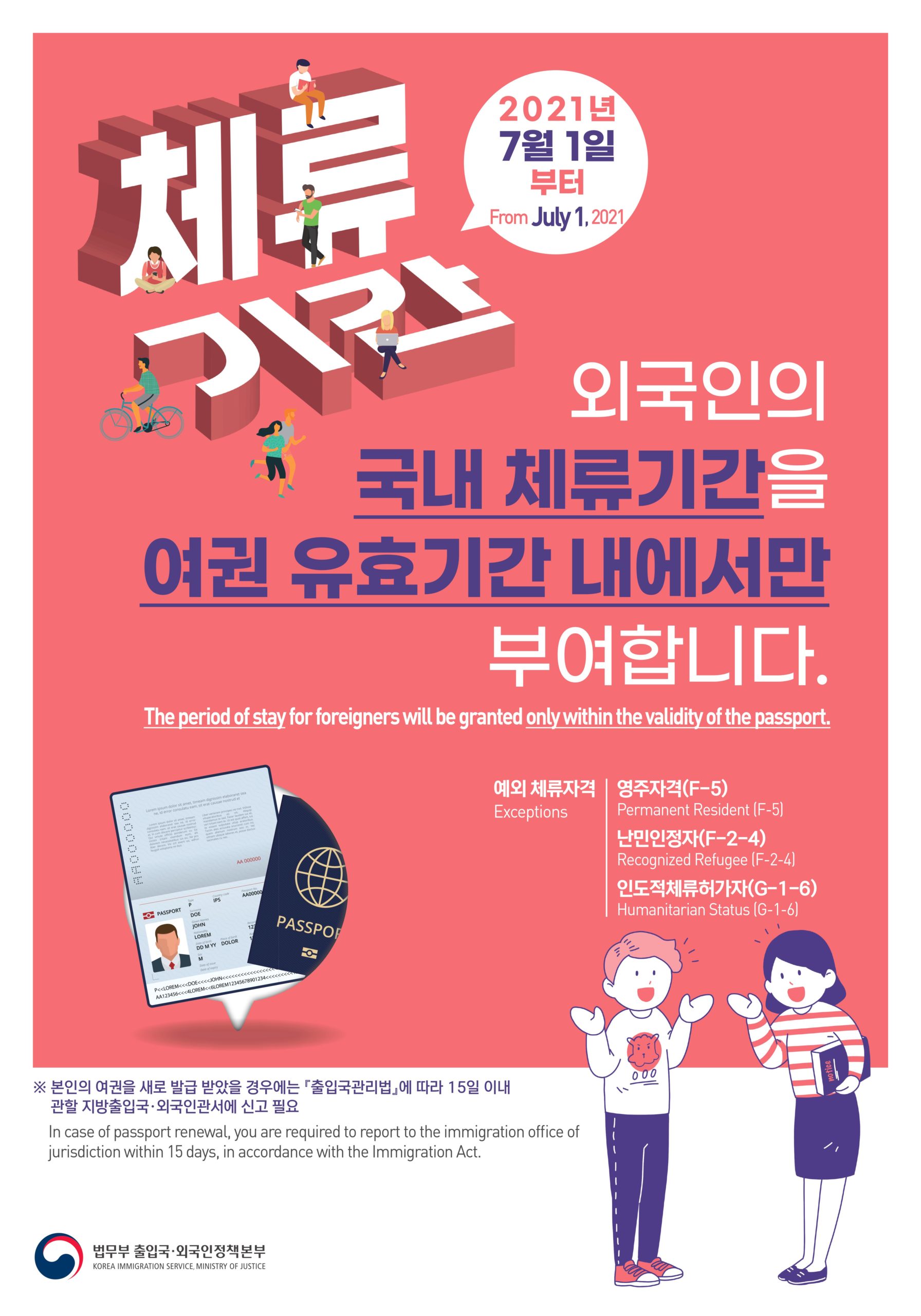 In case of passport renewal, you are required to report to the immigration office of jurisdiction within 15 days, in accordance with the Immigration Act.