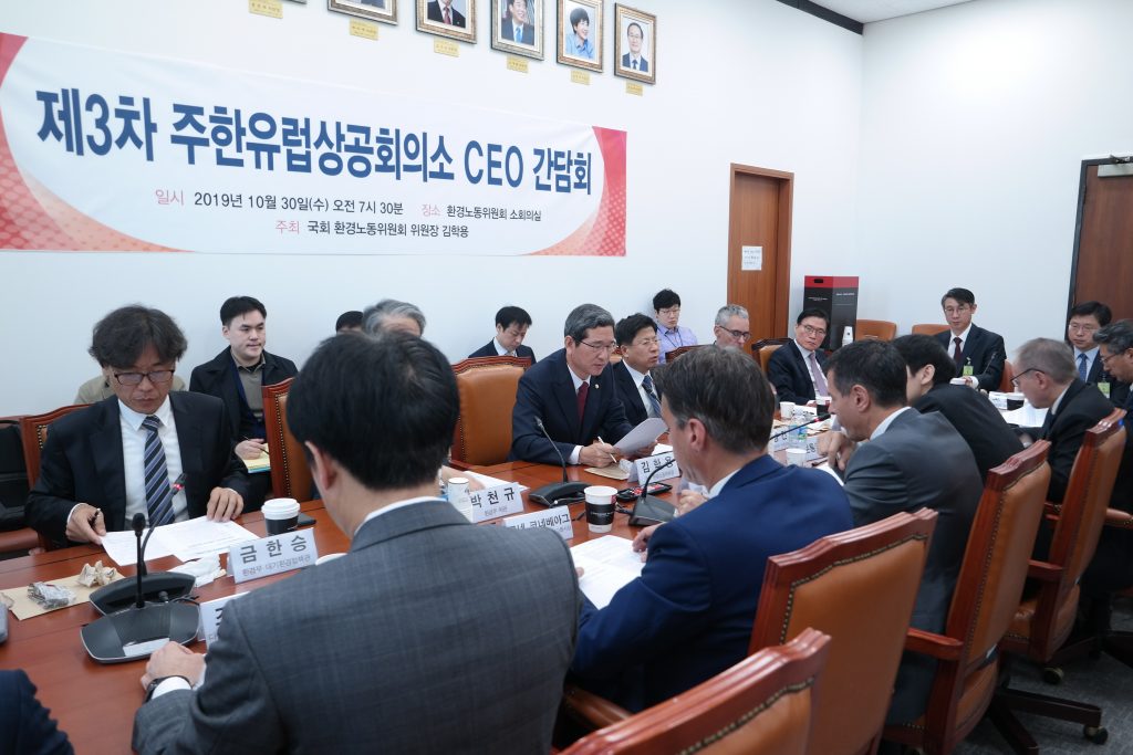 On October 30, ECCK Automotive Committee participated in the third breakfast meeting with Chairman of Environment and Labor Committee of National Assembly Hack Yong Kim at National Assembly Main Building.