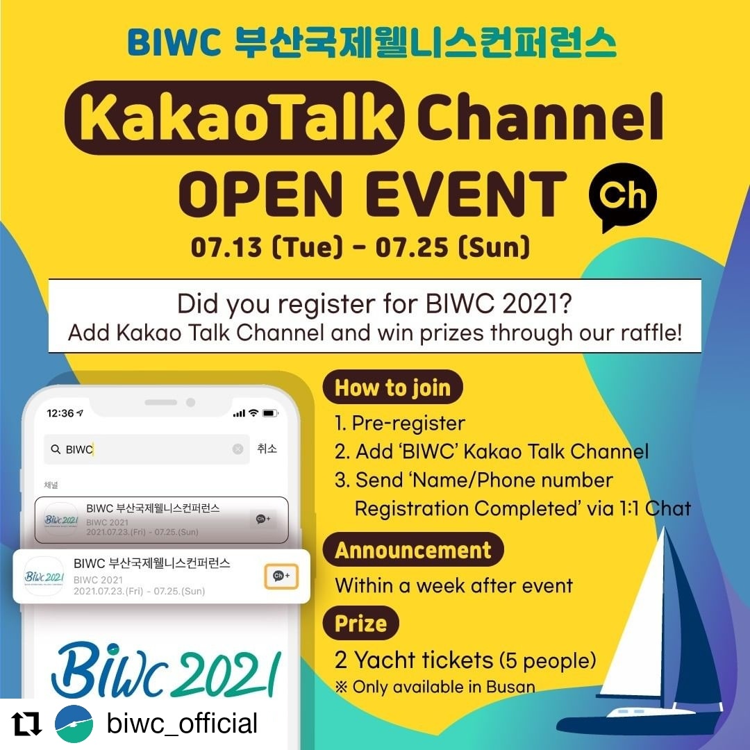 You can pre-register for the event here (https://url.kr/fqw18i). The on-site registration fee is 20,000 KRW and online participation is free. Please visit the BIWC official website(www.biwc.kr) or add the BIWC KakaoTalk channel BIWC 부산국제웰니스컨퍼런스 to check the event details.