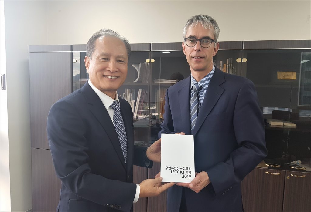 On October 18, the ECCK held a White Paper 2019 hand-over meeting with Foreign Investment Ombudsman Sung Jin Kim. This year’s White Paper compiles key industrial issues and recommendations from the European business community in Korea covering the year 2019.