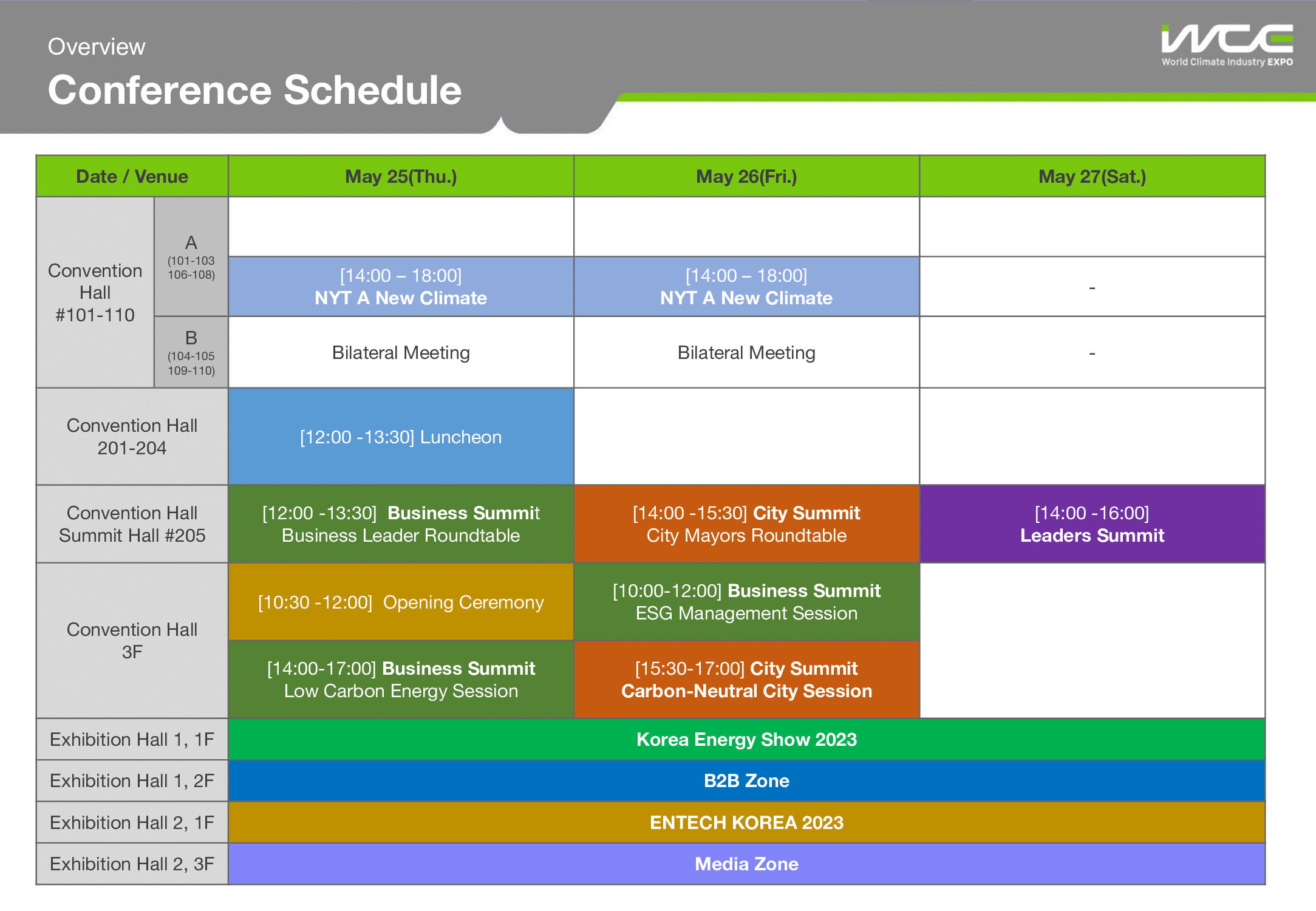 Event Size: More than 100,000 attendees including major global cities related to high-tech climate technology, international organizations, corporate professionals, etc.